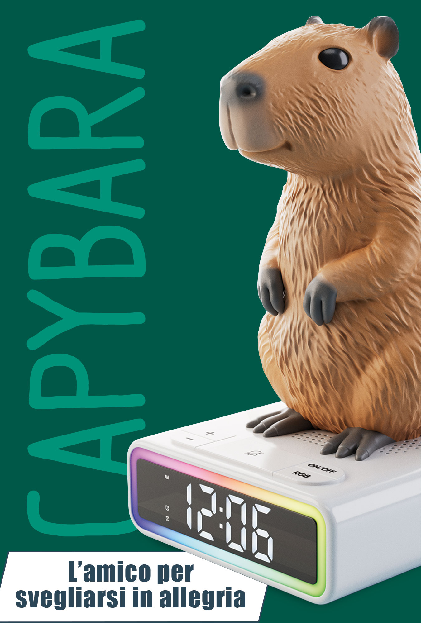 Zabawna Kapibara dotrzyma Ci towarzystwa dzięki uroczemu budzikowi cyfrowemu, który zmienia kolory. Mnóstwo dźwięków budzenia i unikalnych melodii sprawi, że każdy poranek będzie radosny i pełen uśmiechu!