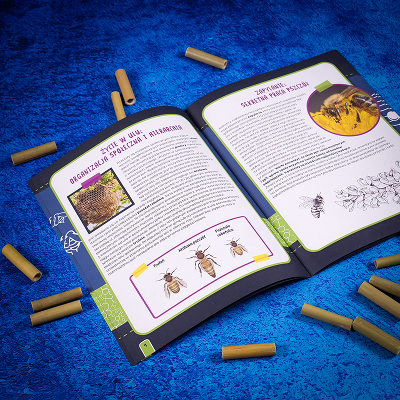 Dzięki informacjom i eksperymentom zawartym w tym laboratorium młodzi naukowcy mogą poznać fizyczne i społeczne cechy pszczół, odkryć, jak nieoceniona jest ich niestrudzona praca dla przetrwania naszej planety, a przede wszystkim poznać sposoby, by przyczynić się do ich ochrony. Czas wkroczyć do niezwykłego świata opartego na współpracy, organizacji i ciężkiej pracy!