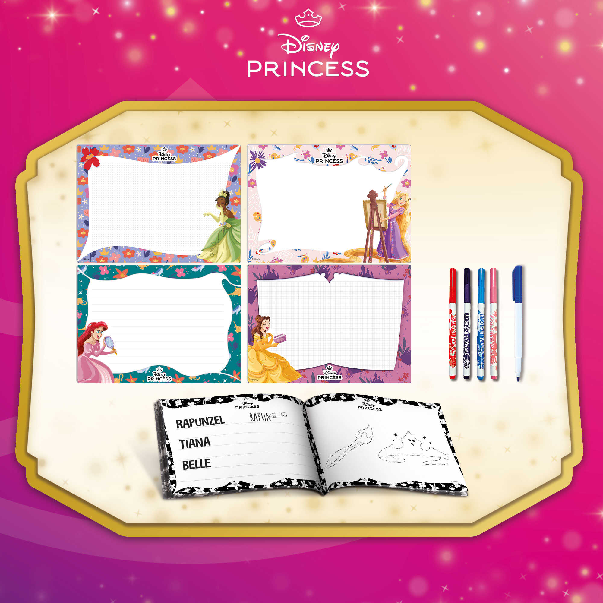 Ten zestaw to prawdziwa szkoła rysowania z Księżniczkami, która zawiera 4 tablice zmazywalne, ścieralny pisak i zeszyt ćwicze z wieloma rysunkami, które posłużą jako podręcznik do nauki rysowania. Bogaty i zabawny zestaw do rozwijania zdolności manualnych, kreatywności i wyobraźni.