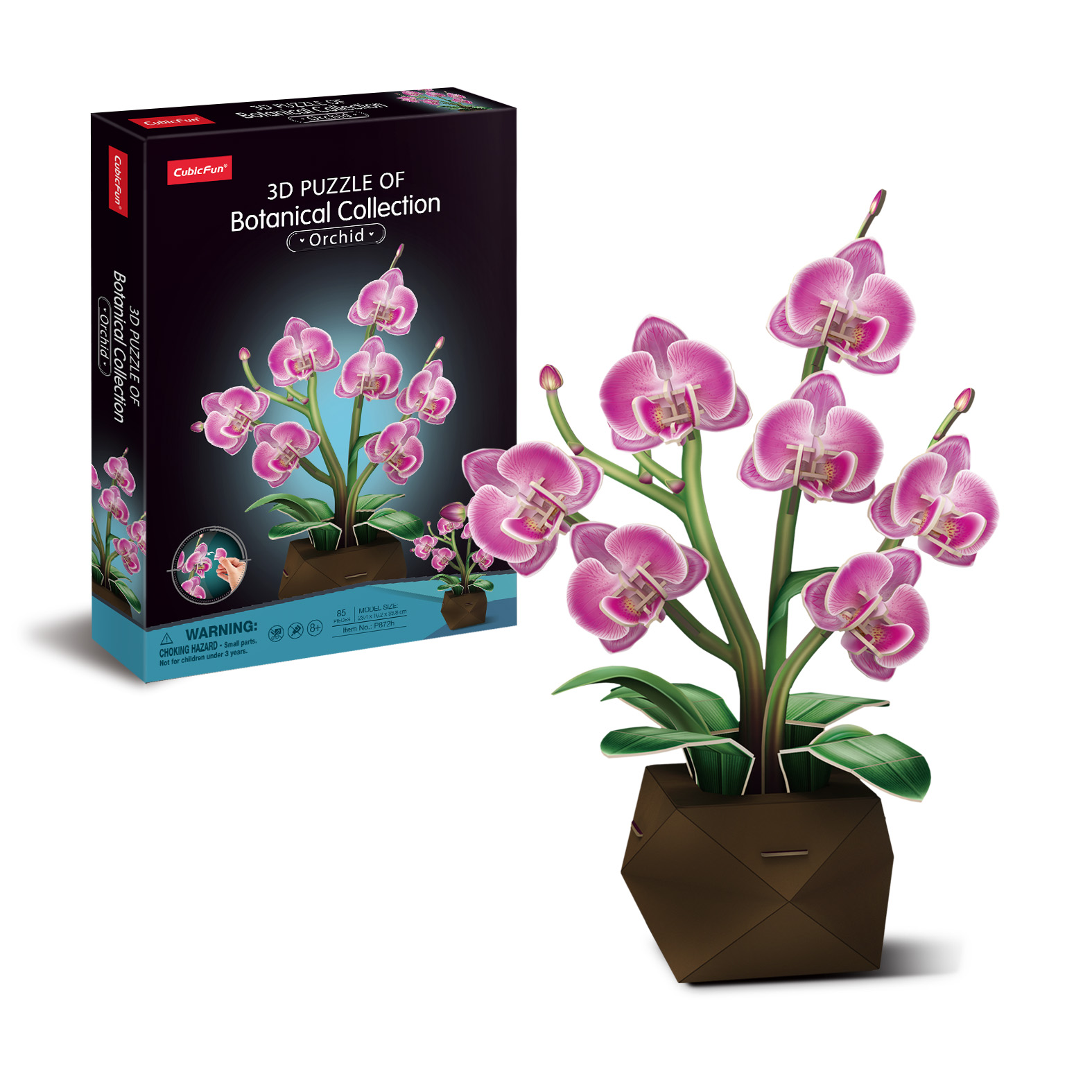 Piękne kwiaty z nowej kolekcji trójwymiarowych puzzli 3D! Opakowanie pozwala na zbudowanie wyjątkowego i kolorowego bukietu orchidei, który składa się ze 85 elementów. Do składania nie są potrzebne dodatkowe elementy takie jak klej czy nożyczki – wszystkie elementy są wstępnie ponacinane na arkuszach. Gotowy bukiet, który można umieścić w specjalnie przygotowanym wazonie ma wymiary 23,4x16,2x33,8 cm.