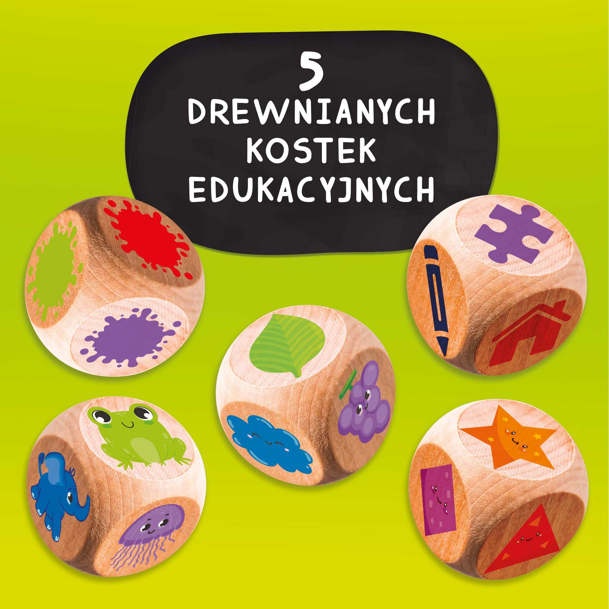Seria zabawnych i edukacyjnych aktywności dla dzieci w wieku przedszkolnym. Pięć kostek, dzięki którym dzieci będą się świetnie bawić, a jednocześnie uczyć i rozwijać wiele niezbędnych umiejętności – pamięć, logikę i uwagę.