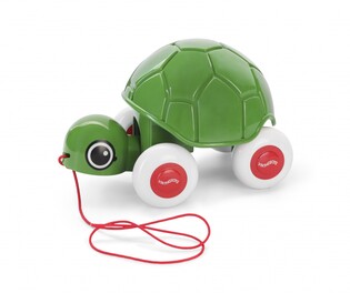 VIKINGTOYS WESOŁE AUTKA ŻÓŁWIK DO CIĄGNIĘCIA to pojazd, który dziecko za pomocą sznureczka może wprowadzić w ruch ciągnąc za sobą. W nagrodę żółwik uroczo przytakuje zielonym łebkiem. Ta fantastyczna zabawka jest bezpieczna, prosta, miękka, cicha, wytrzymała, wykonana z wysokiej jakości miękkiego plastiku. Zabawka została zaprojektowana w Szwecji, w firmie która za priorytet stawia bezpieczeństwo swoich małych klientów.