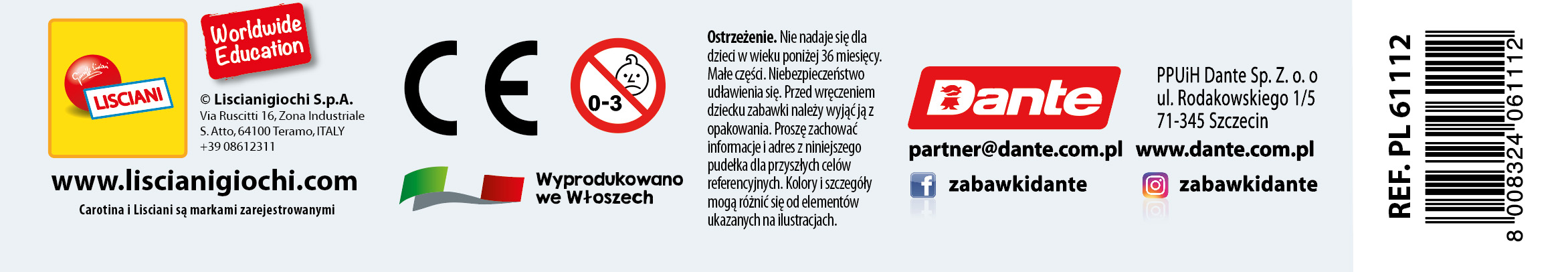 Opakowanie zawiera 2 plansze, 49 kart oraz 49 literek, dzięki którym dzieci poznają pierwsze cyfry i słowa. Naukę umilają barwne ilustracje.