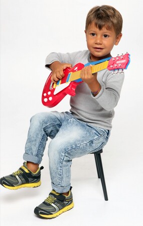 Zostań prawdziwą gwiazdą rocka dzięki tej gitarze elektrycznej! Wytrzymała plastikowa gitara ma 6 strun. Zawieś gitarę na ramieniu i jesteś gotowy na koncert! Do poprawnego funkcjonowania potrzebuje 2 baterie AA (nie dołączono do zestawu). Wymiary opakowania: 56 x 22 x 5 cm