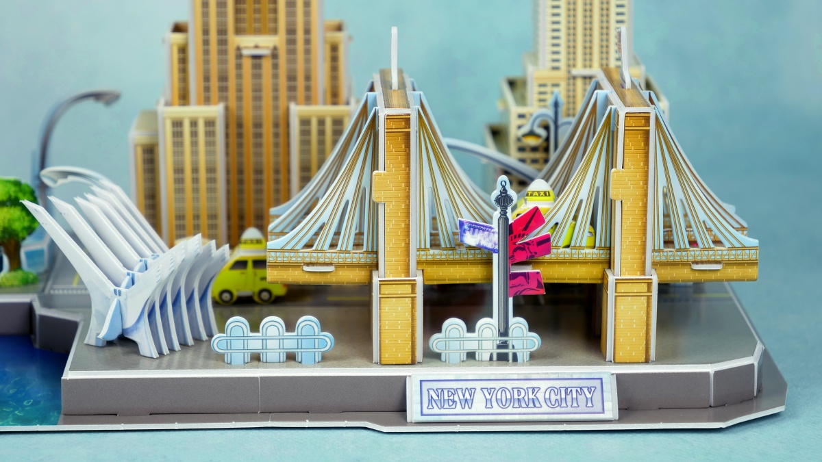 PUZZLE 3D CITY LINE NEW YORK CITY, to pasjonująca zabawa dla dzieci i dla dorosłych. W opakowaniu znajduje się 123 EL. puzzli, wykonanych ze specjalnego materiału przypominającego piankę. Puzzle są ponumerowane, ponacinane i umieszczone na arkuszach. Wystarczy bez użycia siły wycisnąć element z arkusza i zmontować go zgodnie z dołączoną instrukcją, bez użycia kleju ani specjalnych narzędzi. Wielkość budowli po złożeniu 37x22x42cm. Zalecany wiek dziecka 8+.