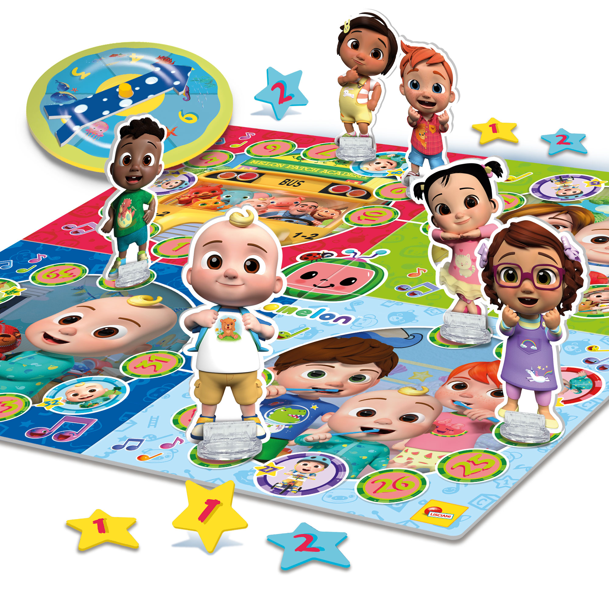 Tradycyjna gra planszowa - Gęś, w wesołym towarzystwie kolorowych bohaterów ze świata COCOMELON. Nie jest to jednak zwykła gra planszowa w gęś, bo podczas zabawy dzieci mają okazję zapoznać się z codziennymi czynnościami. Pole na planszy zaczyna się od pobudki, a kończy na spaniu, podążając przez lekcje w szkole czy posiłki. Na planszy znajdują się także pola specjalne, które uatrakcyjnią zabawę. Produkt przeznaczony jest dla najmłodszych dzieci i rozwija umiejętność relacji z innymi.