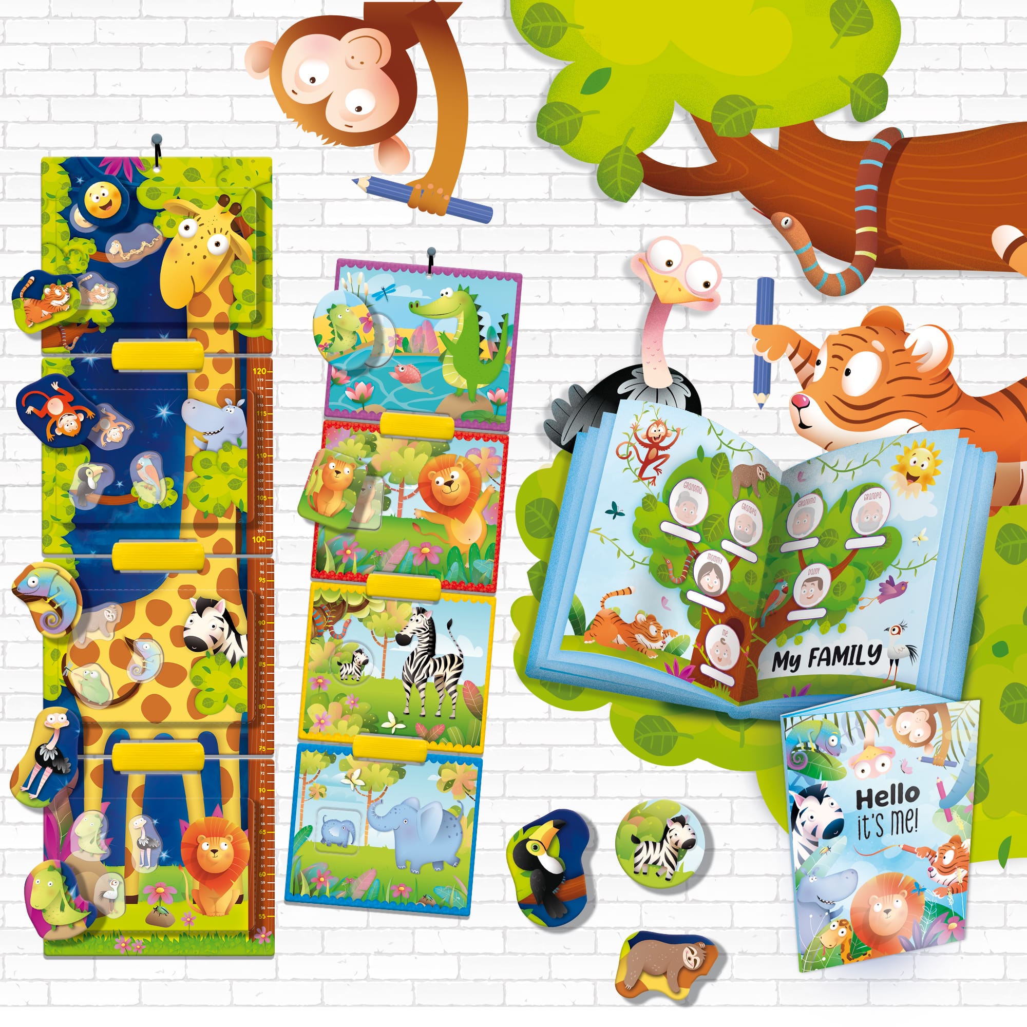 Wesoła żyrafa, która towarzyszy dziecku podczas jego wzrostu. Oryginalna dziecięca miarka z wieloma grami logicznymi! W zestawie książeczka wzrostu do spersonalizowania.