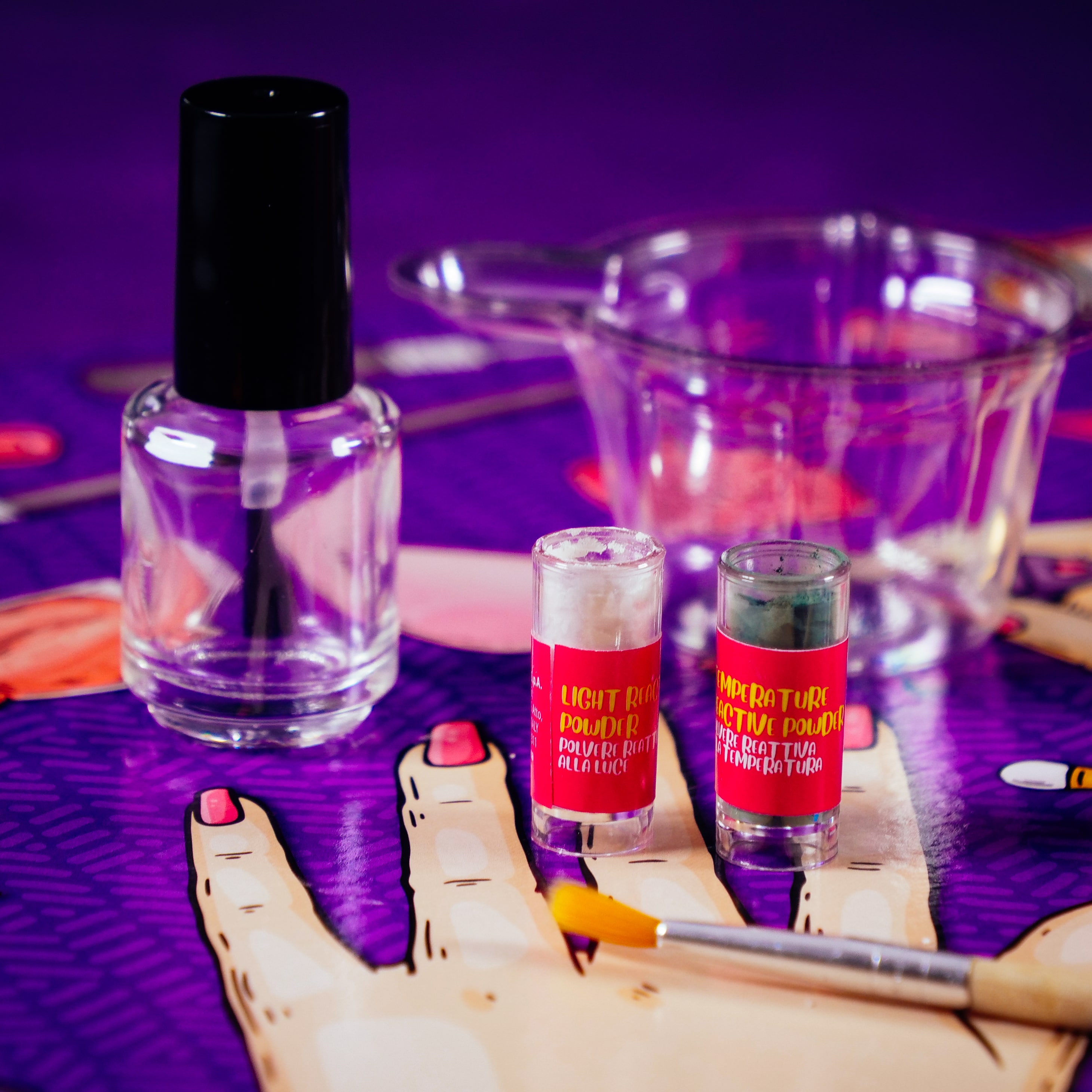 Baw się, tworząc wiele kolorowych i wspaniałych lakierów, dzięki temu wyjątkowemu laboratorium. Przekonaj się na ile sposobów możesz odmienić swój zwyczajny lakier do paznokci, który zmieni kolor pod wpływem światła słonecznego i kontaktu z zimną wodą. Dzięki temu możesz tworzyć nowe odcienie, bawić się bez końca i zawsze mieć na paznokciach inne, modne kolory!