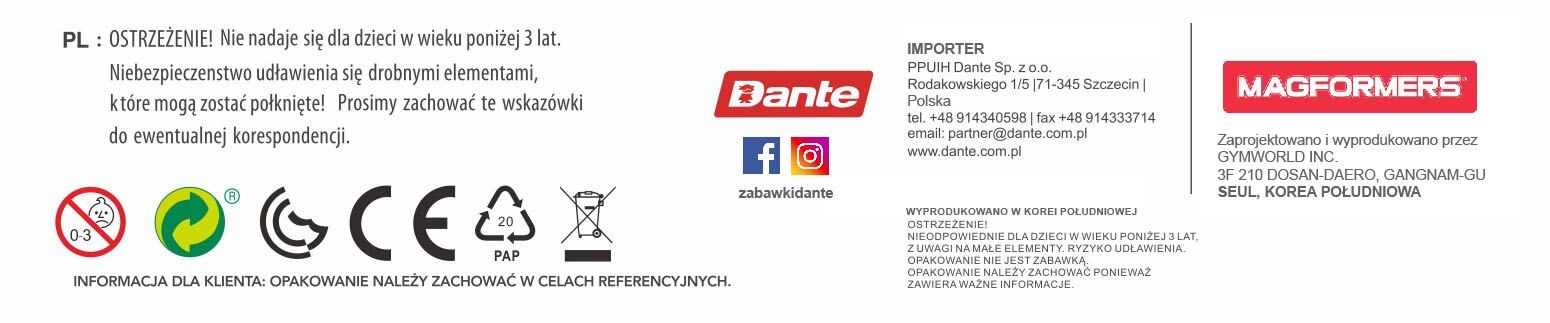Magformers to klocki z wbudowanymi silnymi magnesami neodymowymi. Wystarczy zbliżyć do siebie ściankami dwa klocki, a one natychmiast ze sobą się połączą. Za pomocą trójkątów, kwadratów i pięciokątów można zbudować wspaniałe trójwymiarowe budowle, począwszy od prostych figur, skończywszy na pomysłowych budowlach. Ten zestaw to niezwykle kreatywne klocki, które dają nieograniczone możliwości zabawy. Taka forma zabawy kształtuje i rozwijaje wyobraźnię dziecka.