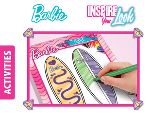 Dzięki niezwykłemu szkicownikowi Barbie, dziewczynki mogą tworzyć supermodne ubrania i dać upust swojej kreatywności. Wewnątrz stron znajduje się wiele modeli Barbie do przebrania ze wspaniałymi naklejkami z ubraniami i akcesoriami. Zestawy zawierają również 8 pisaków do dekoracji.