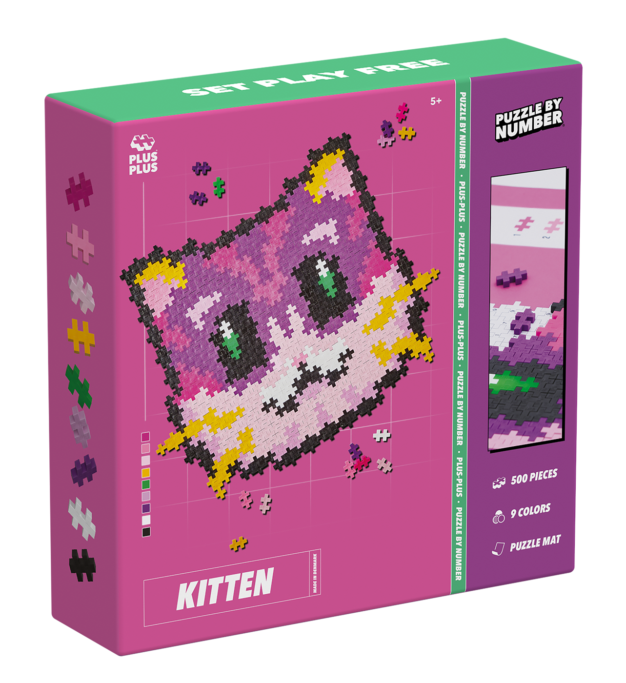 Puzzle by Number łączy zabawną zabawę z klockami Plus-Plus i nauką. Dopasuj kolory i liczby, a następnie zbuduj swoją mozaikę! Zestaw zawiera 500 elementów, które umożliwiają budowę głowy kota. Udekoruj swój pokój lub stwórz coś zupełnie nowego!