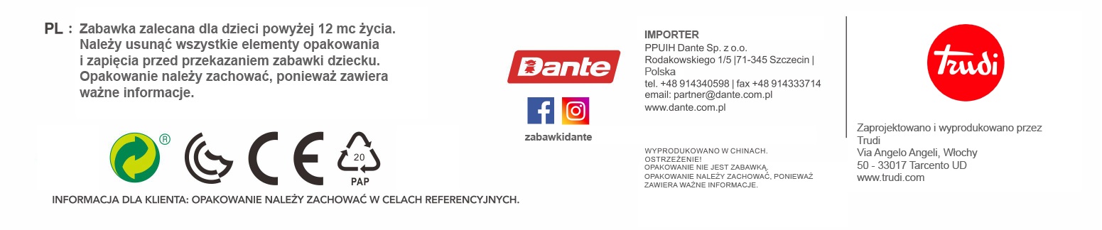 Trudi to niezwykle pluszaki, wykonane ze świetnej jakości materiałów i ręcznie szyte, specjalnie dla małych wymagających klientów! Pluszaki często są powiernikami dziecięcych sekretów i pierwszymi przyjaciółmi, dzięki którym mogą ćwiczyć komunikację i relacje międzyludzkie, są także niezastąpionymi towarzyszami w codziennym życiu.