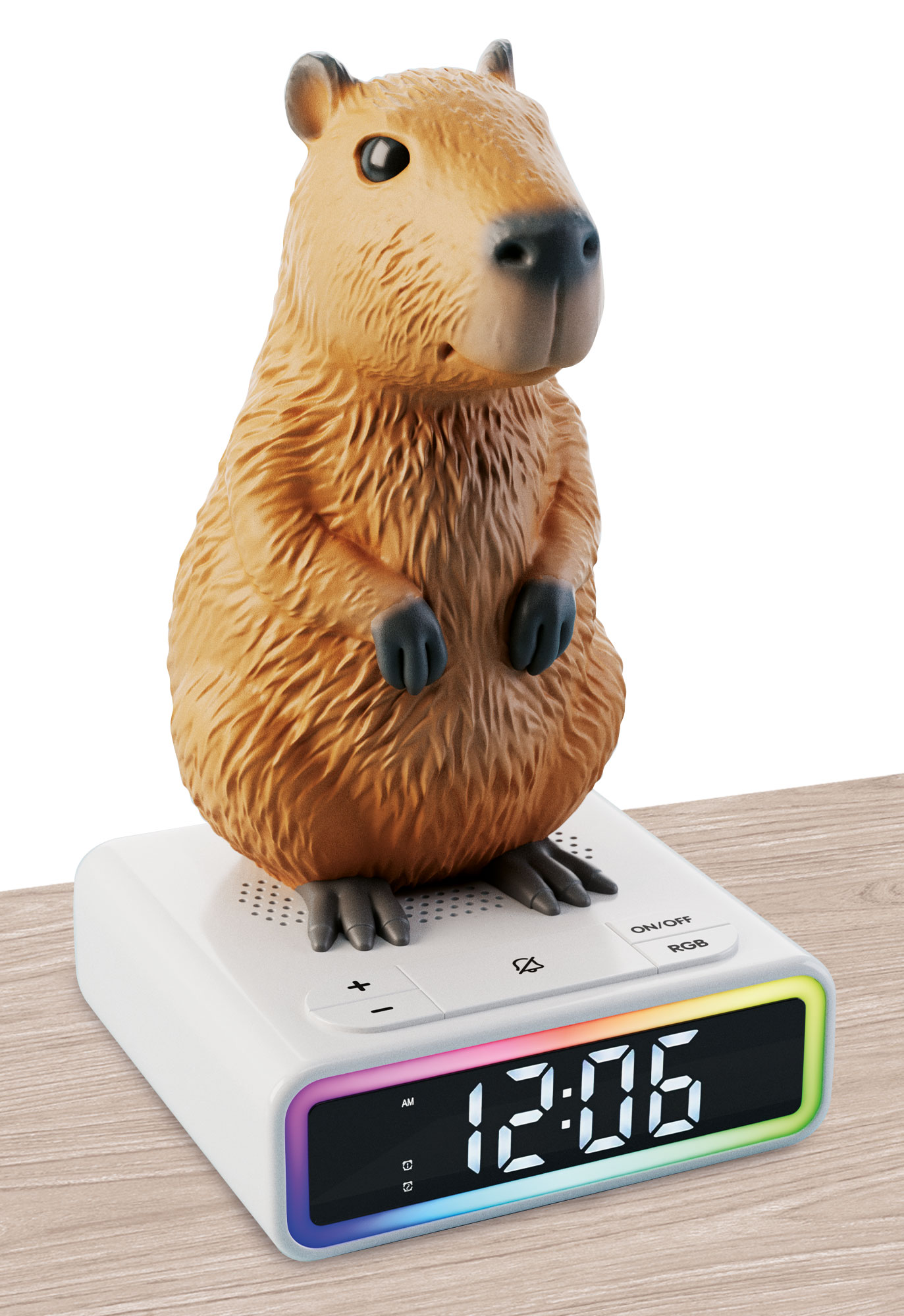 Zabawna Kapibara dotrzyma Ci towarzystwa dzięki uroczemu budzikowi cyfrowemu, który zmienia kolory. Mnóstwo dźwięków budzenia i unikalnych melodii sprawi, że każdy poranek będzie radosny i pełen uśmiechu!