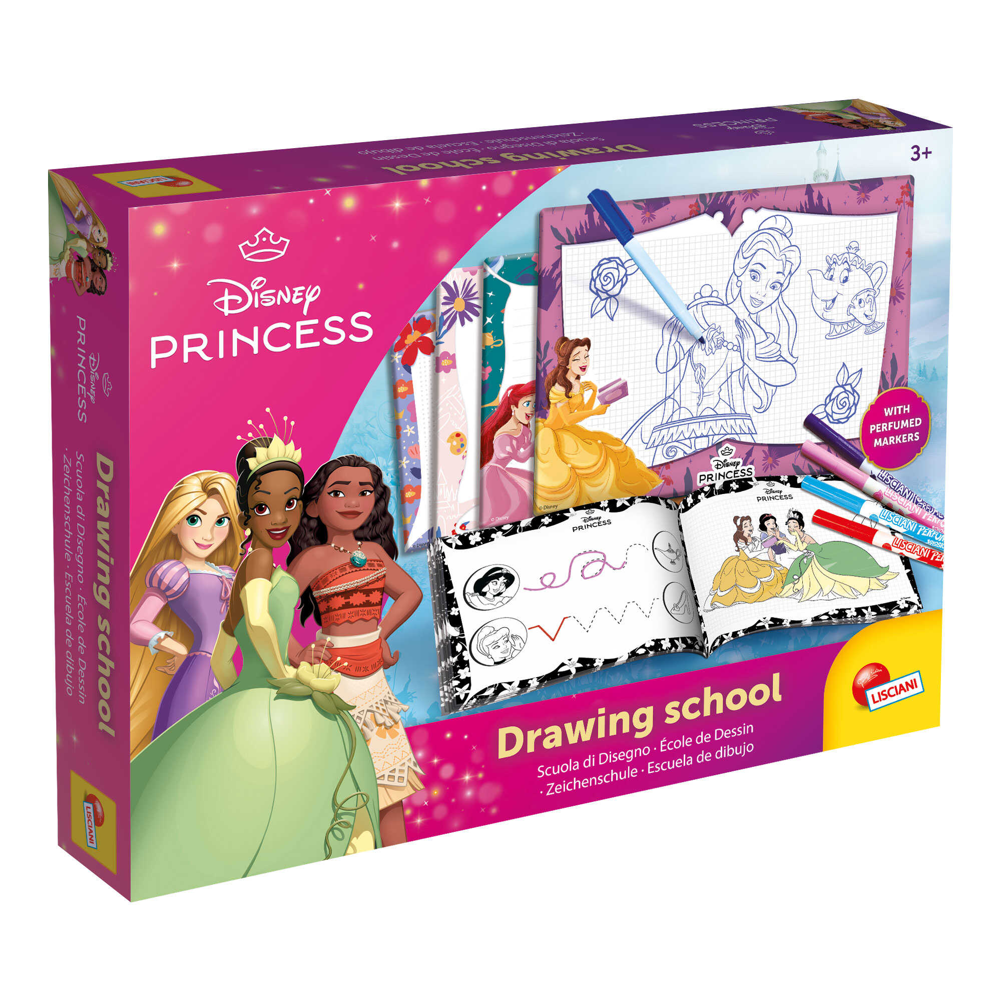 Ten zestaw to prawdziwa szkoła rysowania z Księżniczkami, która zawiera 4 tablice zmazywalne, ścieralny pisak i zeszyt ćwicze z wieloma rysunkami, które posłużą jako podręcznik do nauki rysowania. Bogaty i zabawny zestaw do rozwijania zdolności manualnych, kreatywności i wyobraźni.
