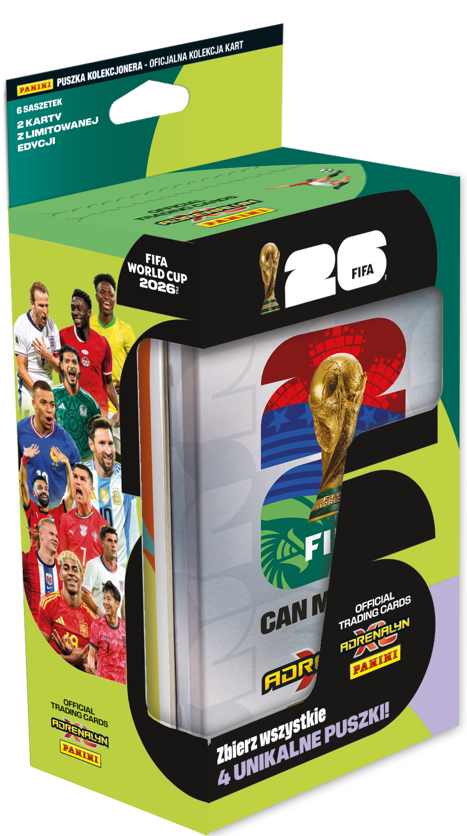 Puszka kolekcjonera zawiera 6 saszetek z kartami, 2 karty z limitowanej edycji oraz kartę Golden Baller.