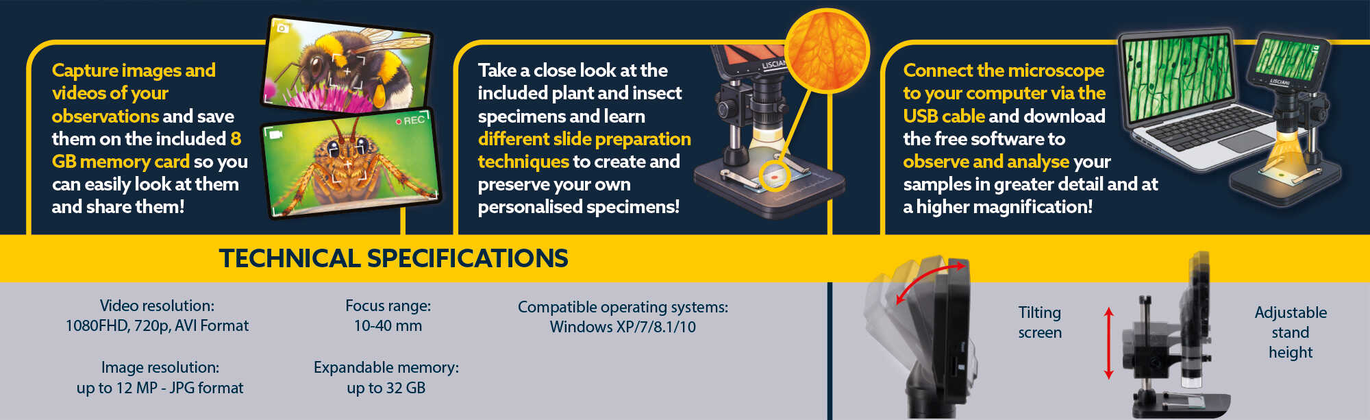 Mikroskop Hi-Tech to cyfrowy mikroskop z 1000-krotnym powiększeniem, który pozwala z łatwością zapisywać i udostępniać zdjęcia oraz filmy z przeprowadzonych obserwacji. Mikroskop można podłączyć do komputera za pomocą kabla USB, a dedykowane oprogramowanie umożliwia szczegółową analizę obrazów.