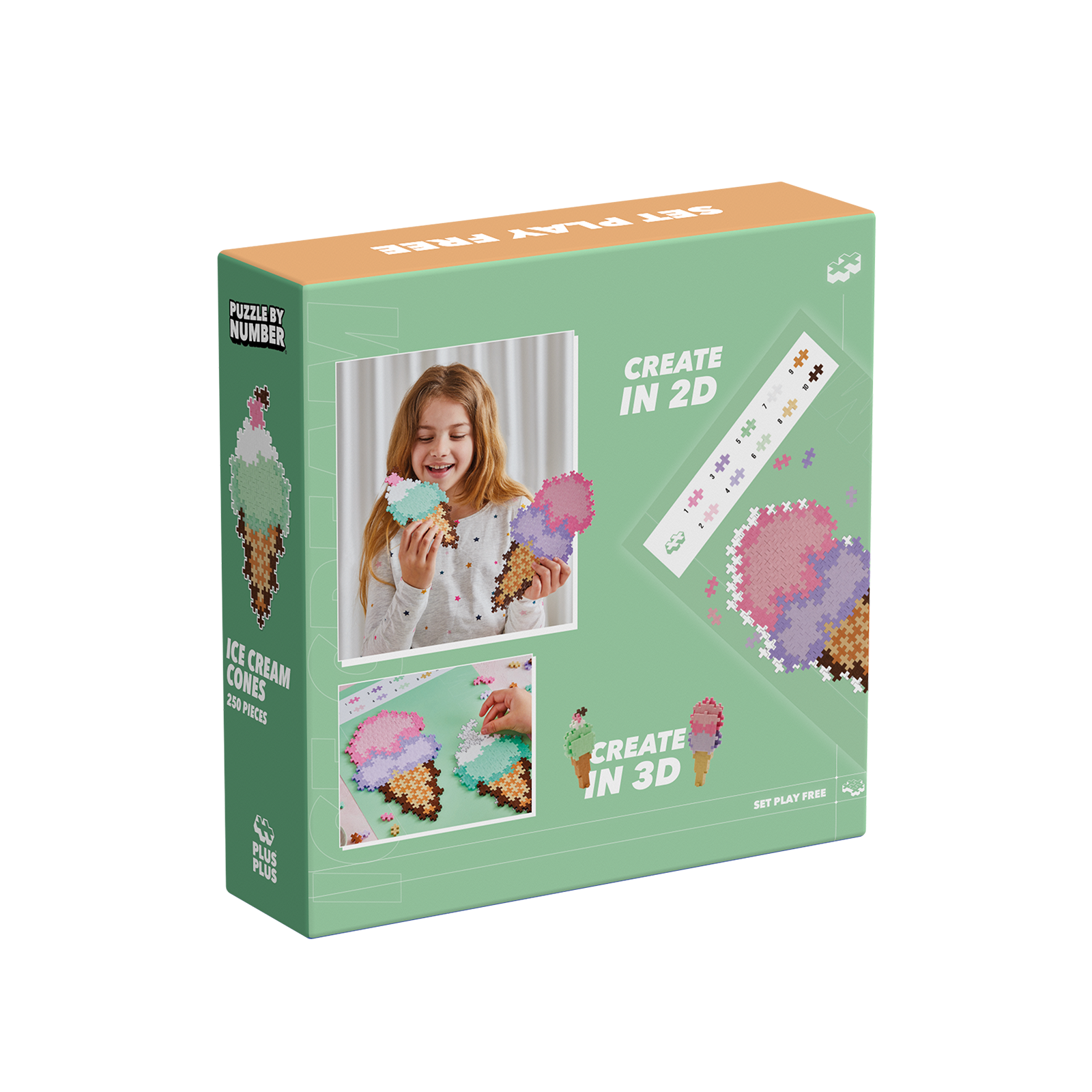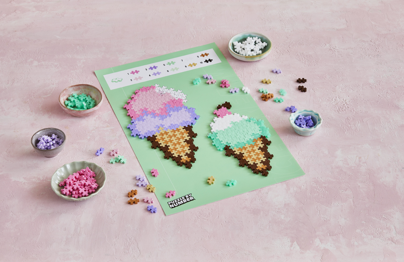 Puzzle by Numbers łączy zabawną zabawę z klockami Plus-Plus i nauką. Dopasuj kolory i liczby, a następnie zbuduj swoją mozaikę! Zestaw zawiera 250 elementów, z których można stworzyć lody w rożkach.Udekoruj swój pokój lub stwórz coś zupełnie nowego!